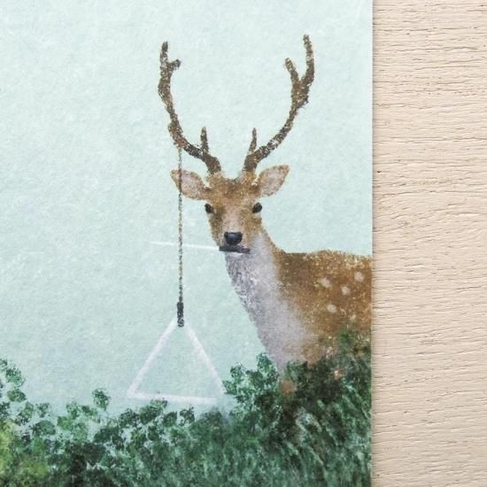 リズムを刻む楽器を奏でる動物さんたちが描かれた、おしゃれなデザインです。