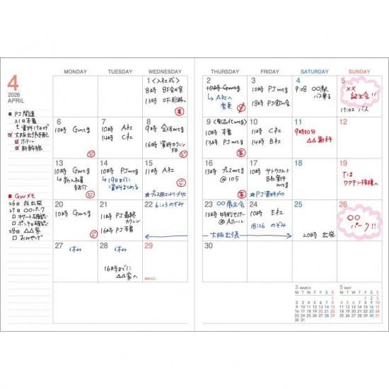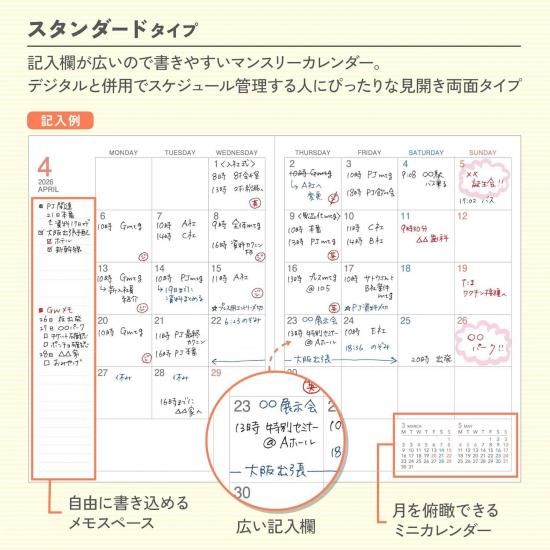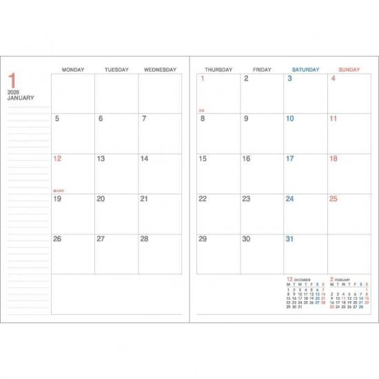 デジタルと併用でスケジュール管理をする方にもぴったりな見開き1カ月タイプ。