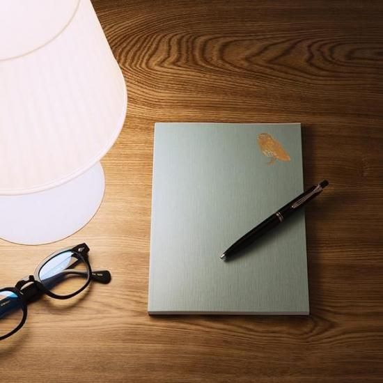 フクロウのモチーフが金の箔押しでデザインされており、キラリと光るアクセントになっています。