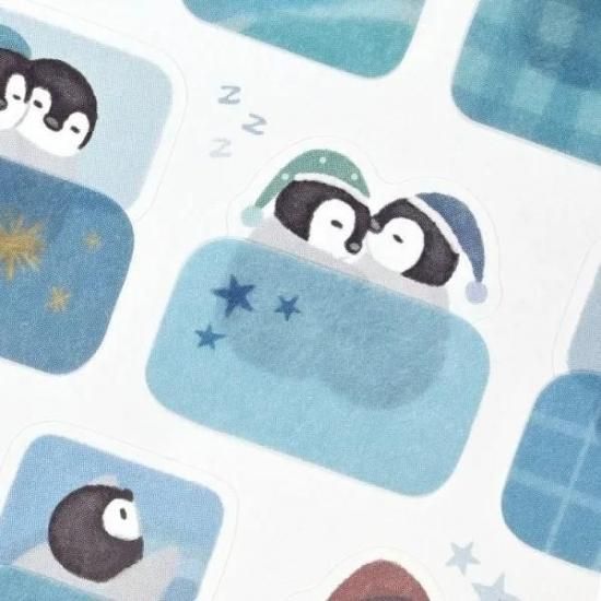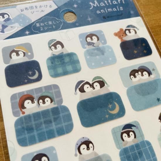 お布団シールは貼ってはがせる素材でペンギンに重ねて楽しめます。