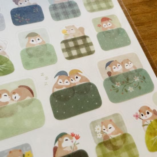 お布団シールは貼ってはがせる素材でモモンガに重ねて楽しめます。