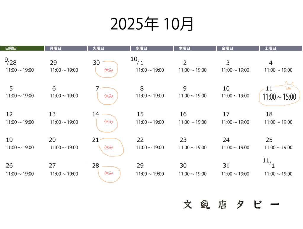 10月11日(土)のみ、11時~15時の短縮営業です。