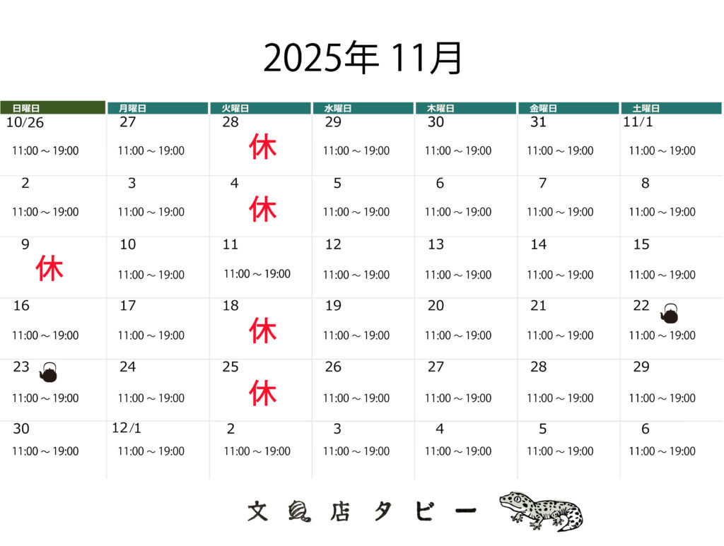 西荻窪店舗、2025年11月は9日(日)が臨時休業。